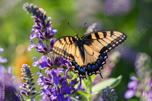Macro of butterfly resting on purple wildflower