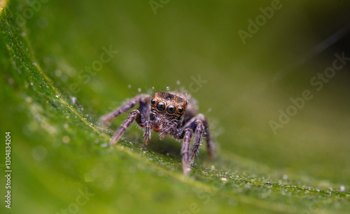 Macro Shot of an Iridescent Jumping Spider on a Green Leaf – Detailed Insect Close-up