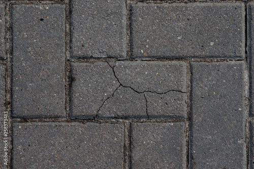 Macro texture of cracked paving slabs. One bad among normal