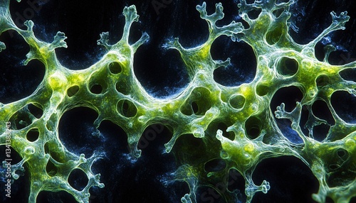 Macro View of Lush Green Algae Structures on Black Background