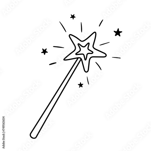 Magic wand vector icon in doodle style. Symbol in simple design. Cartoon object hand drawn isolated on white background.