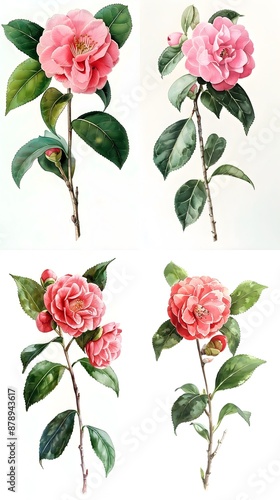 Magical Watercolor Camellia Flower On White Background