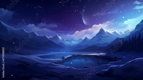 Magical Winter Night in the Mountains under a Starry Sky: Empty, Relaxing Wallpaper.