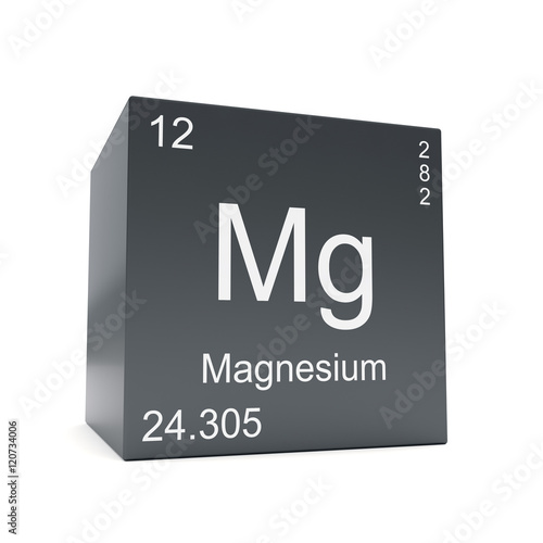 Magnesium chemical element symbol from the periodic table displayed on black cube