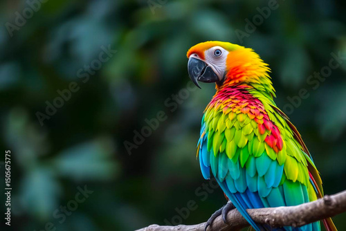 Magnificent Green-Winged Macaw Perched on a Tree Branch, Displaying Its Vivid Red, Green, and Blue Plumage in a Tropical Setting, Vibrant Wallpaper