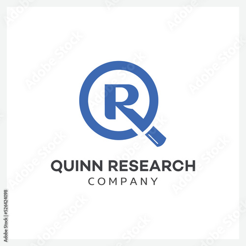 magnifying glass letter q and r logo for search company