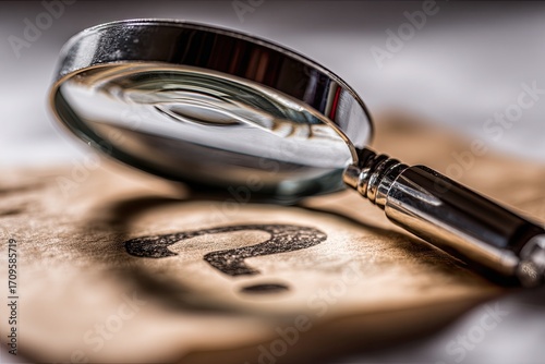 Magnifying glass over a question mark on aged paper