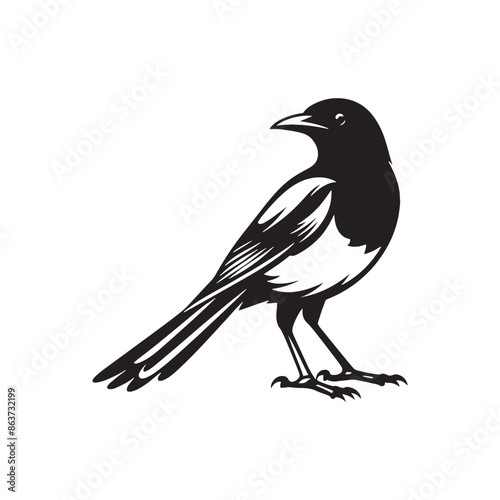 Magpie silhouette profile view - magpie illustration - magpie black vector