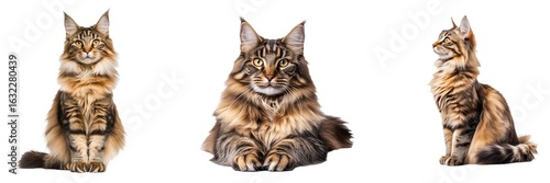 Maine Coon Cat Set Isolated on Transparent Background. PNG.