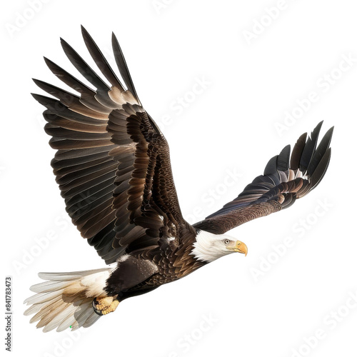 Majestic bald eagle soaring in the sky, showcasing its powerful wings and keen eyesight, symbolizing freedom and strength.