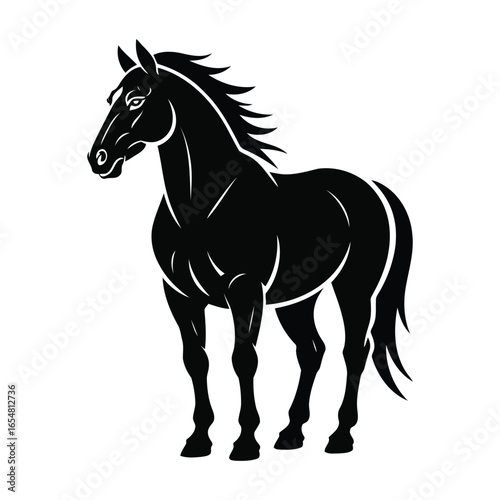 Majestic black horse standing proudly in silhouette