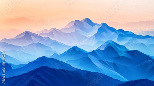 Majestic blue mountain range under a pastel sky during sunrise