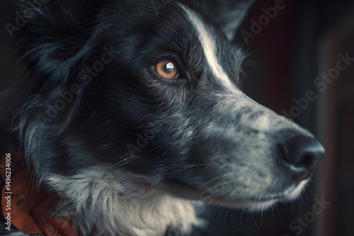 Majestic Border Collie Dog Portrait Close up of a Black and White Dog s Face