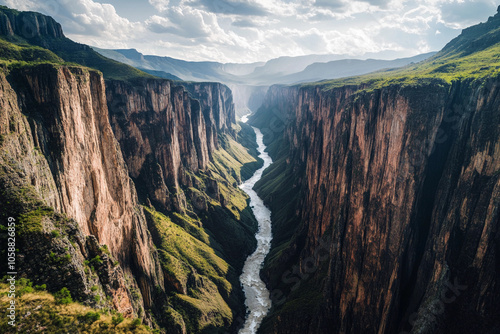 Majestic canyon and river landscape in dramatic sunlight