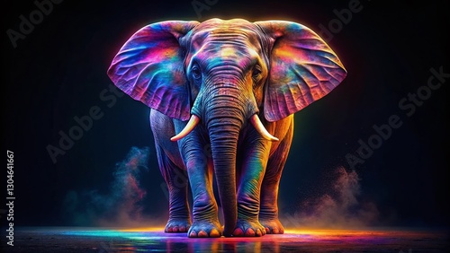 Majestic Elephant Illuminated: Dark Background Fashion Photography