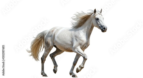 Majestic Grey Horse Galloping Powerful Stallion Running White Background
