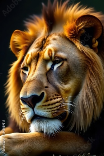Majestic lion asleep, close-up view of peaceful face, fauna, majestic, lion
