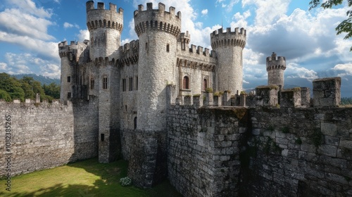 Majestic Medieval Castle: A Stone Fortress Under a Blue Sky