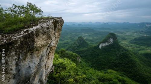 Majestic Mountain View with Dramatic Cliff Overlooking Vast Forest Landscape : Generative AI