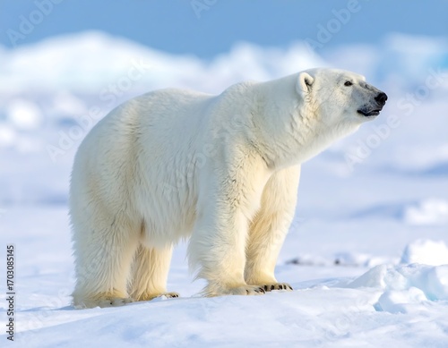 Majestic polar bear on icy terrain