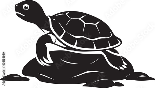 Majestic sea turtle with shiny shell resting on a rock isolated on transparent background