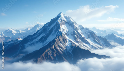 Majestic Snow-Capped Mountain Peaks Soaring Above Clouds