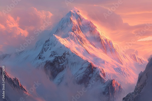 Majestic Snowcapped Peak Glowing in Sunset Hues