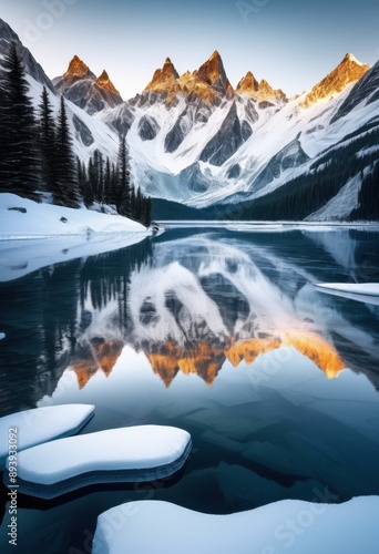 majestic snowy peaks overlooking frozen lakes winter wonderland landscape, mountains, scenic, view, icy, waters, picturesque, scenery, cold, beauty, mountainous