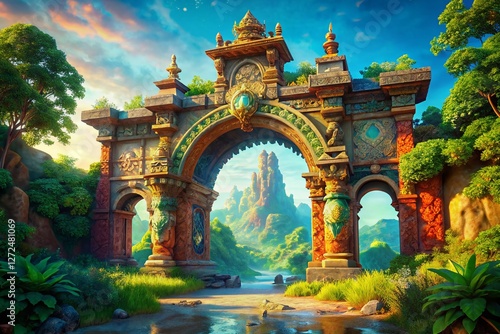 Majestic Stone Archway at Shangri-La: High-Resolution Stock Photo
