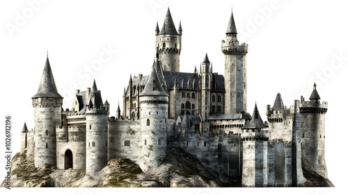 Majestic Stone Castle with Towers and Gate on Hilltop
