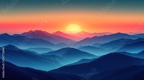 Majestic Sunrise Over Misty Mountain Ranges