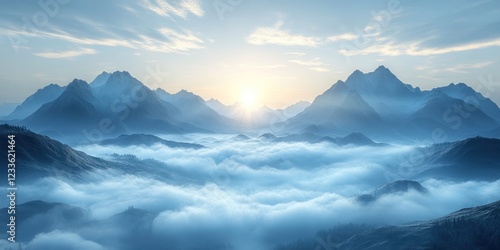 Majestic Sunrise Over Misty Mountains: A Breathtaking Panorama