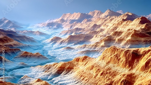 Majestic Sunrise Over Rugged Mountain Range with Misty Valleys