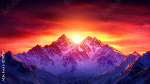 Majestic Sunset Mountain Peaks - Breathtaking sunset illuminating snow-capped mountain peaks, vibrant colors, dramatic sky