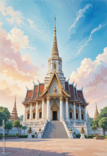 Majestic Thai Temple at Sunrise A Stunning Digital Painting