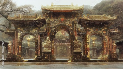 Majestic Triumphal Arch in Baroque Style Surrounded by Nature