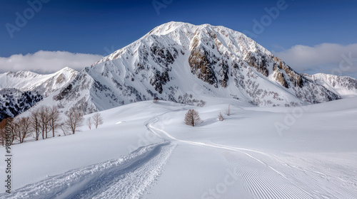 Majestic Winter Mountain Peaks A Stunning Snow-Covered Landscape, Showcasing the Beauty of Nature's Towering Giants A Serene View of Snow-Capped Summits in Winter's Embrace