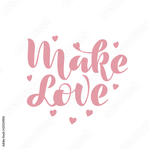 Make love. Vector illustration with handwritten phrase. Congratulation. Pink Lettering.