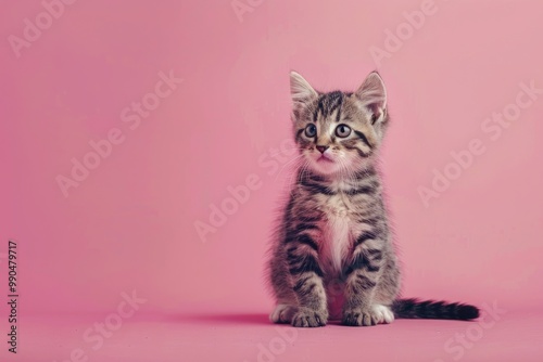 Make me a cute kitten with one color background, copy space with generatife ai