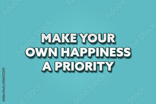 Make your own happiness a priority. A Illustration with white text isolated on light green background.
