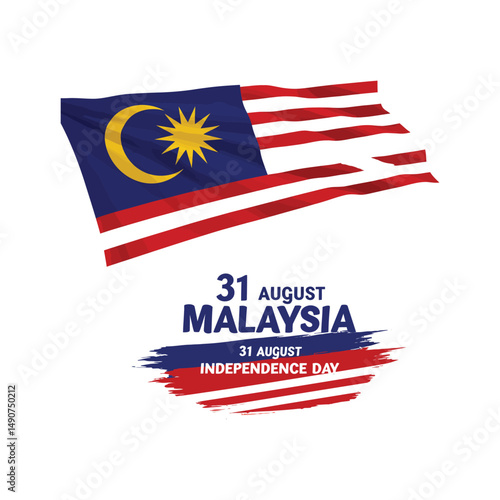 "Malaysia Independence Day 31 August with Waving Flag and Patriotic Typography Design"