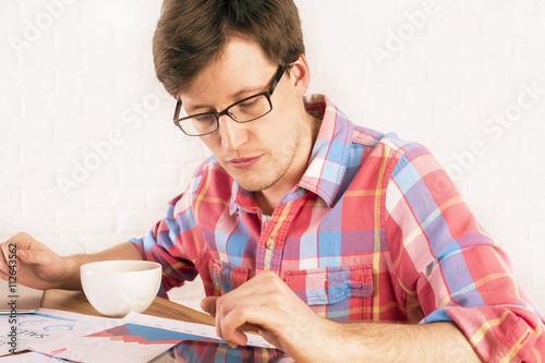 Male looking tablet report