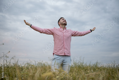 Male model posing in the park