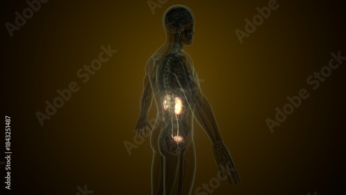 Male white kidneys anatomy. 3d illustrations