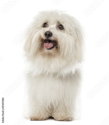 Maltese sitting in front of a white background