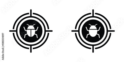Malware bug in target vector icons set. Network Vulnerability icon, Malware concepts