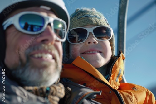 Man and child are wearing sunglasses and smiling