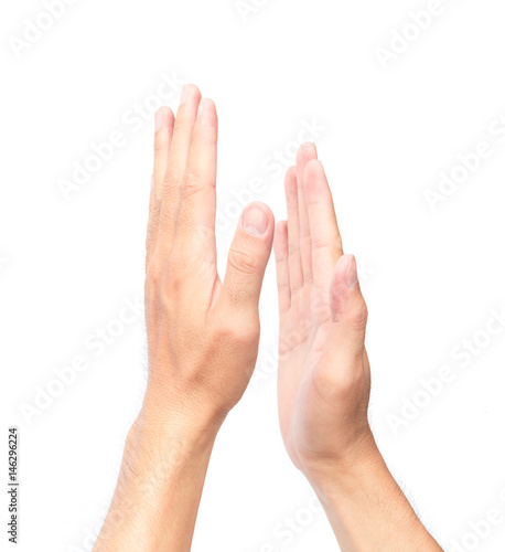 Man clapping hands on white background