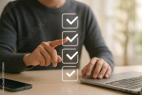 Man completing online checklist on laptop