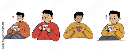 Man Drinking Hot Tea or Coffee - Cozy Cartoon Character Set
